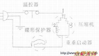 了解冰箱冰柜的基本。如上图所示。冰箱、冰柜最基本的电路由温控器、碟形保护器和压缩机等组成。