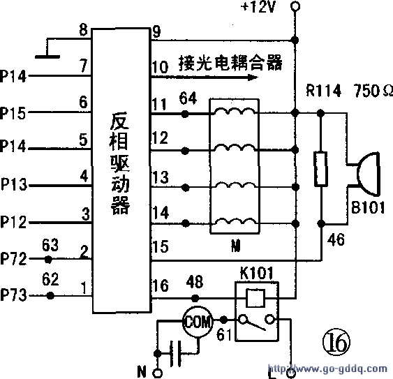 外接EZPROM93C46如图15所示,由单片机对其进行读写操作。不读写时,68、69、70点为高,67点为低电平。空调器运转计时等数据通过93C46进行保存,同时其内部数据还决定了空调器的开机运行模式。