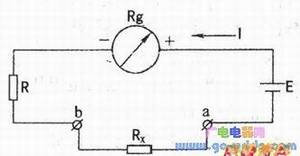 式中,E为电池,R为固定电阻,Rg为表头内阻,Rx为被测电阻。