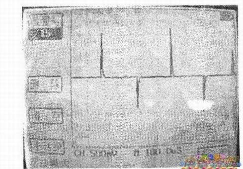 按照ET521A表使用说明书上介绍的方法,在行输出变压器被测绕组端子加入400μs激励方波时,用示波器探头检测“行管”集电极,+B与绕组连接端,有时不会出现振铃信号,而只有脉冲信号,如下图所示。
