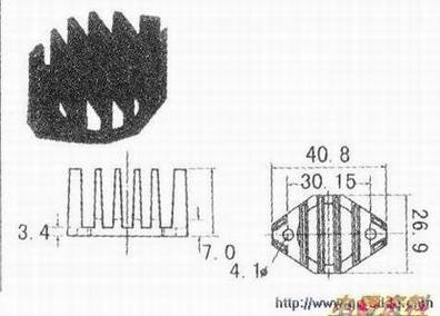 此散热器可通过螺钉夹持在元器件上,故不会干扰器件及其接线。热阻为7.3C/W,材质为铝合金黑色阳极化。