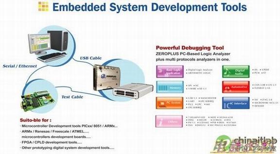 当工程师使用PC完成待测的仿真后,便可以直接透过孕龙逻辑分析仪进行待测电路的波形测量,而且孕龙科技逻辑分析仪支持的特殊总线约有四十种,如车用电子中的 bus、Lin bus、Flex ray,数字音讯中的I2S、S/PDIF、、ST,内存接口中的SPI、I2C、1-Wire,接口中的SSI、、Micro wire,PC系统中的USB1.1、LPC、、Manchester、PS/2、SM bus、SD/MMC Card,或其它类别如MOD bus、Signia RF、HDQ、IR656、IRDA等等。特殊总线模块最主要的功能在于,方便工程师进行讯号分析时省去分析讯号手动译码的时间。