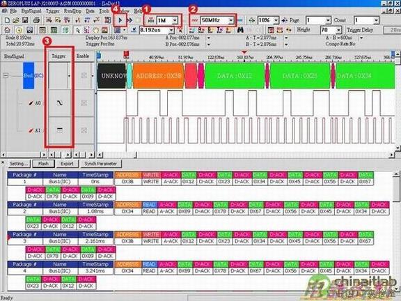 设定取样,孕龙科技逻辑分析仪最高取样频率为400M,为确保取样误差过大,建议取样率需高过待测目标四倍以上。