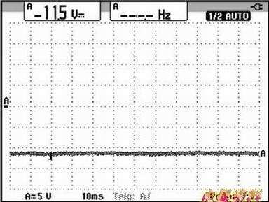 2)用直流给待测功率板和控制板供电,连接示波器至测试点,通过Flukeview4.2监视软件观察U、V、W三相的SPWM波。当DC供电线的电压达到额定值时,晶闸管的三相上下半桥的栅极电压应为-12V左右,以使截止,图3。