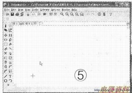 首先启动EAGLE,得到图2界面,然后分析电路构成.555时基集成块;4017十进制计数器;两只;12只;10只。分别属于EAGLE库的liner;40**;caitor;discrecte;.Supplyl。我们在设计电路之前须先打开这些元器件库,以备调用。具体方法:在图2控制面板的library项前单击‘+’,出现图3所示屏面。击打相应库的灰色小球,使之成绿色大球,这些库的元器件就可用了。在图2的控制面板中右击projects,新建一个工程,取名myprjecto如图4所示。下面开始设计原理图,先右击myproject,随即在触发菜单中选择new\schamito将要编辑的原理图命名为fgdl。如图5所示。图5即为原理图编辑界面,在这里就可编辑电路图了:第一步,调入幅框,单击add标签,触发了应用库,寻找frames,并打开,选择一个合适的幅框,就可在其中画原理图了。第二步,调入各元器件,击打ADD标签,在应用库中找到40**,单击‘+’号,找到4017,并单击这时光标处就会吸附一个4017的符号,移动光标,带着符号移动符号到图中合适的地方,单击放下。这时你会发现这个符号只有14个针脚,缺少脚,这时可单击INVOKE标签,击打器件,触发一个选择菜单,如图6所示。然后选择P项,光标处就会吸附一对针脚,把它放在合适的地方。然后再用同样方法放置其元器件。第二步,连结网线与结点。击打NET标签,将各个元器件的针脚连结起来。连结时侯要用“单击起点双击结束”的方法。连结电源针脚可在最先或最后进行,要用到的符号可在SUPPLY1中找到,并用ADD命令添加到合适的地方。