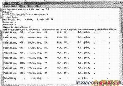 先在文件夹任意处建立一个记事本文件,然后打开该文件,并用此文件的打开功能去打开刚才我们保存的“广东省.map”文件,你会发现如下内容: