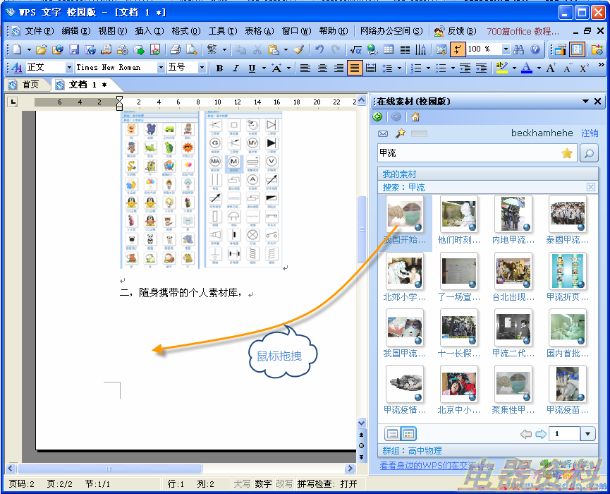随着多媒体教学的在校园内的开展,老师的工作也越来越离不开互联网的协作,了解最新的资讯,寻找课件的素材,学生最关注的动向等等,通过网络,使老师的工作更加快速和便捷,WPS 在线素材插件,全新的素材分享平台,通过这个平台,我们可以将自己收藏的素材轻松上传到网络,与同行们一起分享,从而集众人之力建成一款开放型、大容量、超级方便的随身素材库。