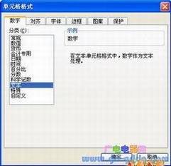 在弹出的“设置单元格格式”对话框中单击“分类”下的“文本”项(如图3)后