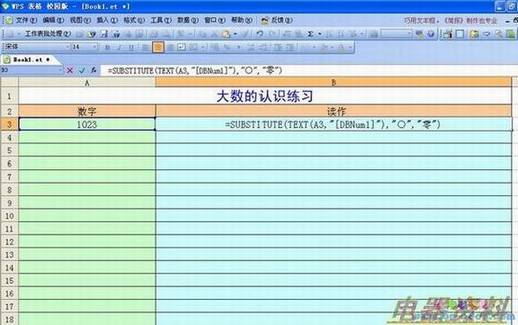 将单元格属性设为“文本”可以让避免这种情况的出现。)接下来再选中B3单元格,在编辑栏中输入公式“=SUBSTITUTE(TEXT(A3,"[DBNum1]"),"○","零")”(如图5)
