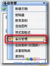 万一出现突发情况,我们可以从“视图→任务窗格”中调出窗格,点下拉箭头选“备份管理”。(图4)