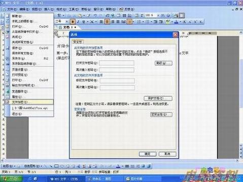 第二步:在打开的需要加密的文档窗口下,依次单击“文件--文件加密”打开一个“选项”对话框,如图6:
