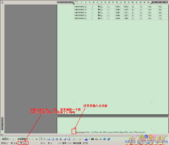 再将光标移动到需要改变页面设置方向的页上,这是节数状态显示,当前光标在节1,总的有两节。呵呵