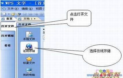 2.打开"首页"中的打开文件,选择"在线存储"。
