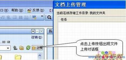 3.点击"在线存储"窗口右上角的"上传"按钮,弹出"文档上传管理"对话框。