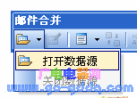 我们单击“视图→工具栏→邮件合并”菜单,弹出“邮件合并”工具栏。
