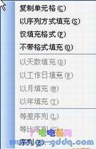 3、右键填充:可以用右键拖曳单元格填充,而后在右键快捷菜单中选择填充方式,甚至可以转到“序列”对话框进行更为详细的设置。