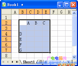可以使用图20.1来演示已用区域范围。其中C2:E2和B4:B7区域已经使用,那么既可以同时覆盖这两个区域的最小矩形区域B2:E7即为当前表的已用区域。