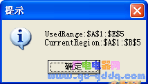 & "CurrentRegion:" & Range("a1").CurrentRegion.Address, 64, "提示"