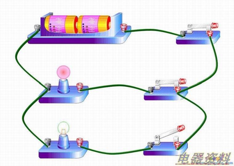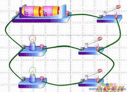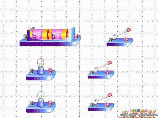 我们希望实现的效果是:当移到任意一个开关上单击时,伴随着单击鼠标的声音,开关的状态会在“断开/闭合”之间切换,两个小灯泡也会随之发光或熄灭。这样的效果可以通过WPS演示中的动作设置来实现,不过在进行动作设置以前需要做好前期准备。