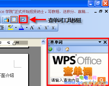 7、使用方法:单击工具栏上的查单击工具按钮,任务窗格中出现查单词的相关内容,鼠标单击“请输入查询内容”处,输入要查询的内容,单击搜索按钮就可以得到结果了。