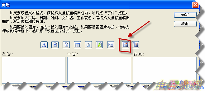 2、单击“自定义页眉”按钮,打开“页眉”对话框。