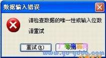 在图一中选择“出错警告”,在“标题”输入框中,输入“数据输入错误”。在“错误信息”输入框中,输入“您输入的数据出现重复,请检查数据的唯一性 请重试”。点击“确定” 如图二:
