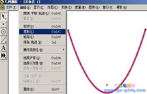 例如在演示文稿中添加“抛物线”图像。 先在几何画板中将“抛物线”图形画出来后,再选中复制到剪贴板。