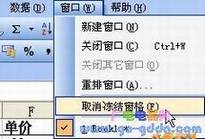 如果想取消固定的行列的话,就单击菜单上的“窗口→取消冻结窗格”,见图4: