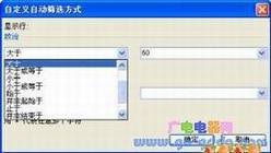 操作步骤:点击列标题‘政治’右侧下拉按钮,选择下拉菜单中的‘自定义’,弹出‘自定义自动筛选方式’对话框,选择‘大于’,输入‘60’后单击‘确定’。如图3: