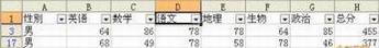 操作步骤:点击列标题‘英语’右侧下拉按钮,选择下拉菜单中的‘98’即可。如图2: