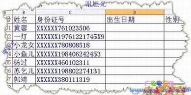 目前,我国的身份证号分为两种,一种为15位, 一种为18位。在15位的老版身份证中,第7到12位为出生日期数,最后一位为性别代码,偶数为女,奇数为男。18位的新身份证中第7到14位为出生日期数,倒数第2位为性别代码,同样偶数为女,奇数为男。