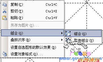 所有画图的工作完成后,点一下“绘图”工具栏上的“选择对象”按钮(即那个箭头形状的按钮),一次选中所有对象,在对象上点击右键,并在弹出的菜单上选择“组合→组合”(图2),把所有对象组合成一个对象。