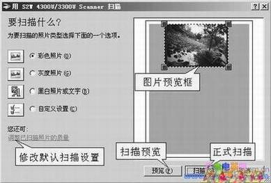 此时,Word将会启动扫描引擎,开始进行图像扫描。和一般的扫描操作一样,我们把要扫描的照片放入扫描仪,先点击“预览”,完毕后选取扫描区域,再点击“扫描”按钮便可以开始正式扫描了(如图3),在Word的状态栏中还会显示扫描的进程。很快,当扫描任务完成后,在文档中便会出现我们需要的图片了。