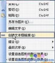 首先是在绘制的第一个文本框中输入内容(也可以用复制、粘贴内容的形式),当输入内容超出文本框范围时,在第一个文本框上单击鼠标右键,在菜单中选择“创建文本框链接”,并将鼠标指针移到第二个文本框中,此时鼠标即可变成一个带把的“口杯”形状,如图02),单击鼠标即可完成文本框链接。此时,我们在第一个文本框中输入或粘贴内容(超出文本框范围的部分)就会自动链接到下一个文本框中。反之,当第一个文本框中的内容有所变化时,后面文本框中的内容就会自动随之移动而变化,使链接的文本框形成一个互动的整体。