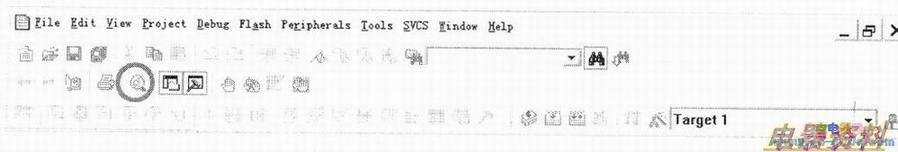 在编译源程序代码时,出现警告仍然可以写入芯片进行调试,但出现错误就不可以进行调试了,然后就应该执行dScope。dScope一词是Debug和Scope的合成语。下图中KeilμVision2执行菜单文件工具栏中带有红色“d”字的按钮
