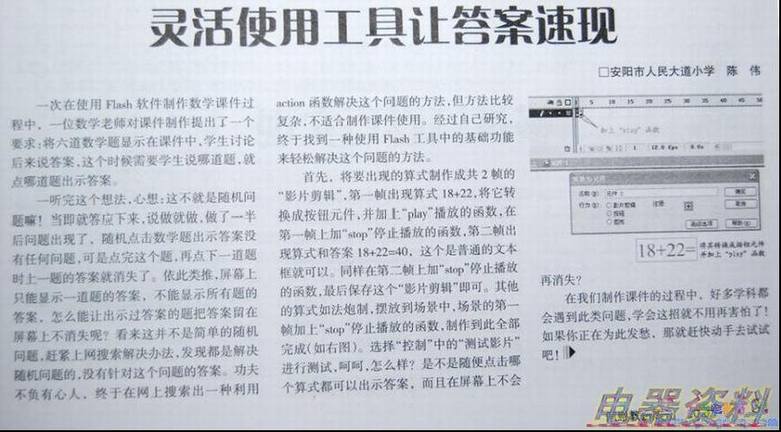 元月4日出版的《信息教研周刊》课件探索·应用栏目刊登了安阳市人民大道小学陈伟老师的文章《灵活使用工具让答案速现》,