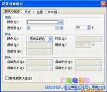 2、用双击存放题目的文本框,在弹出的“设置对象格式”对话框中,单击填充颜色选项右侧的下拉箭头,将文本框的填充色设为与背景一样的白色(如图2),