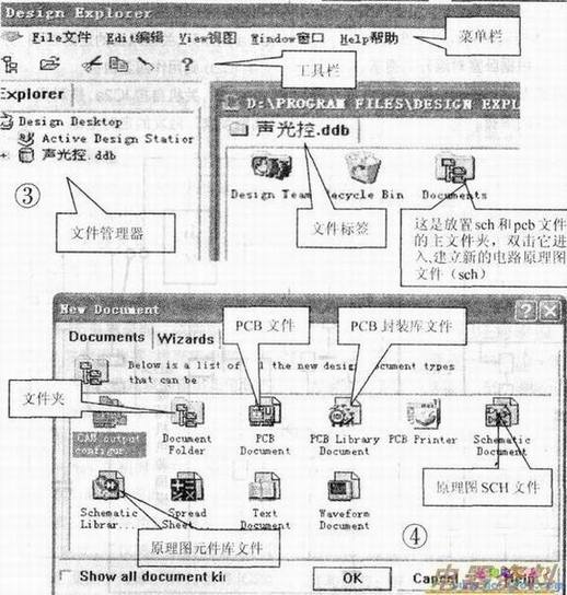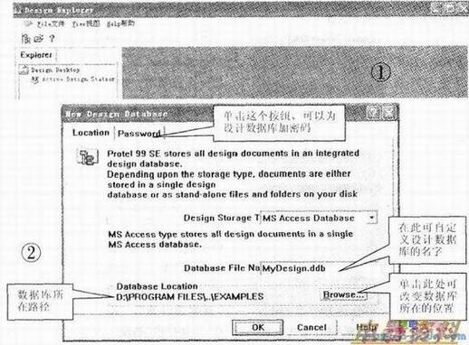 执行菜单命令File文件/New新建,系统将弹出图2所示的新建设计数据库对话框。将数据库更名为声光控.ddb,单击OK。