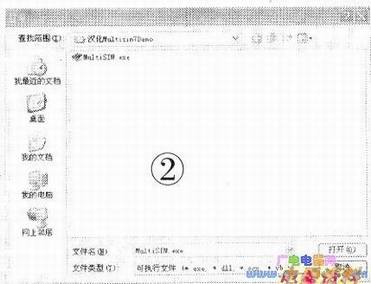 3、在“查找范围”栏中找到D盘下建的“汉化Multisim7 Demo”文件夹,然后选中复件“MultiSIM.exe”文件,单击下方“打开”按钮,将出现如图3所示对话框。