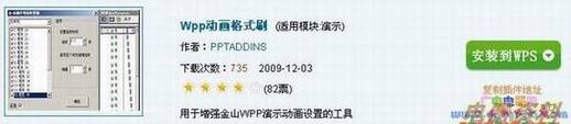 对于该插件的详细介绍请参考0421版主的教程《【WPP】优秀插件点评之 动画格式刷 for WPP2009》http://bbs.。