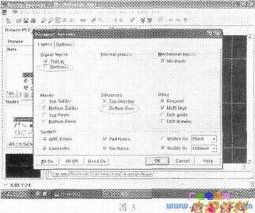3、在“Layers”设置项中将“BottomLayer”、“BottomOverlay”取消选定,只留下如图3所示的设置。