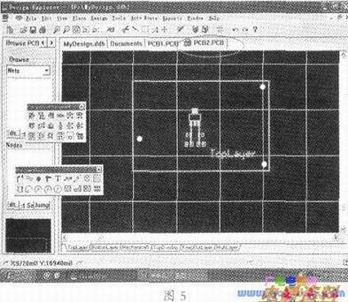 6、新建一个PCB文件,如“PCB2PCB”。在新建的PCB文件中按下键盘的“Ctrl”+“V”将刚才复制的板子从系统的剪贴板中取出来,选好位置后,单击鼠标的左键将板子粘贴到编辑器中。如图5所示: