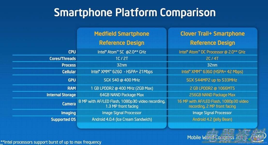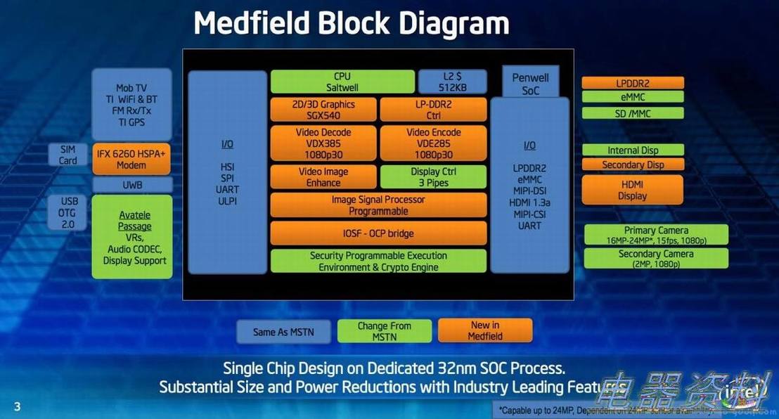 1、Medfield,针对智能手机的Atom处理器