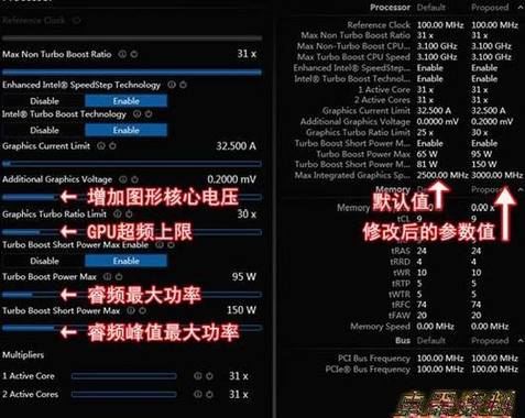 1.设定“Graphs Turbo Ratio Limit”(GPU超频上限)为“30x”,即当前CPU外频(100M)×30÷2,也就是1500Mhz;