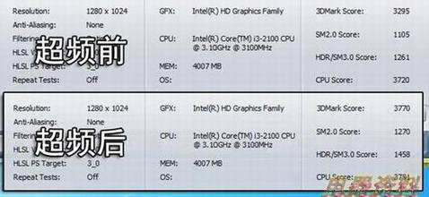 核芯显卡超频后性能提升很明显,在3DMark06和Vantage中分别提升了12.6%和19%。运行《星际争霸2》游戏的帧率也有明显提升玩1VS1模式卡基本可以保证流畅了。