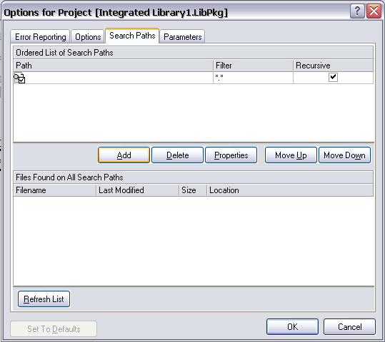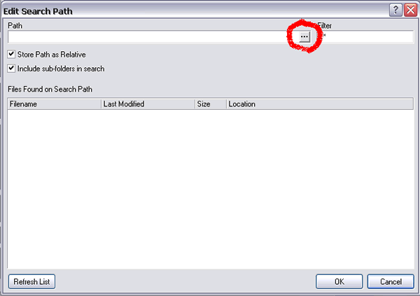 单击ADD按钮,打开如图所示的对话框。点击图中所示按钮,选择.pcblib所在的文件夹,单击Refresh List按钮确认所选择的文件夹是否正确,然后点击OK按钮关闭对话框。