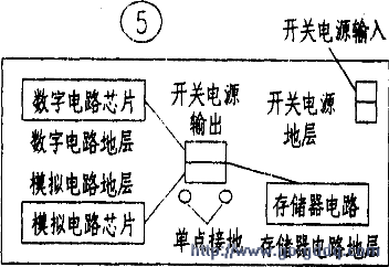如果整个产品只有一层接地层,则必须像图5那样在单层中分隔。无论是在多层PCB上进行地层分隔成上在单层PCB上进行地层分隔,不同电路的地层都应该通过单点与开关电源的接地相连接。