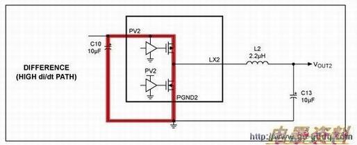 LX2的升/降时间比LX1快很多。因为LX2与主输入电源相隔离,通常不需要考虑传导辐射问题。但是,在一些案例中,LX2也会对其它器件和/或 连接器 引脚造成辐射。同样可以在LX2增加一个缓冲器来降低辐射。可以选择同样参数的元件,电容应≤ 220pF ,配合使用8Ω至20Ω的串联。