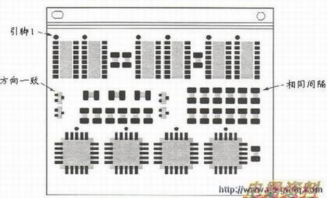 类型相似的元件应该以相同的方向排列在板上,使得元件的贴装、检查和焊接更容易。例如使所有径向的负极朝向板件的右面,使所有双列直插封装()的缺口标记面向同一方向等等,这样可以加快插装的速度并更易于发现错误。如图2所示,由于A板采用了这种方法,所以能很容易地找到反向 器 ,而B板查找则需要用较多时间。实际上一个公司可以对其制造的所有 线路板 元件方向进行标准化处理,某些板子的布局可能不一定允许这样做,但这应该是一个努力的方向。