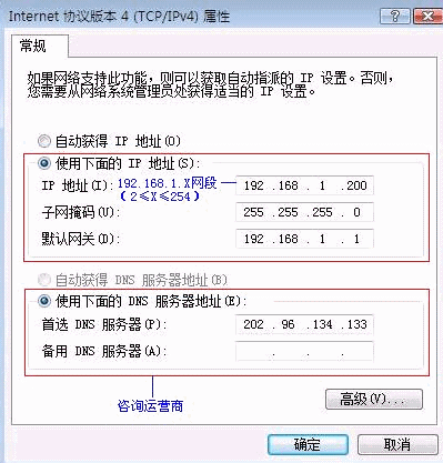 DNS服务器地址:向运营商咨询